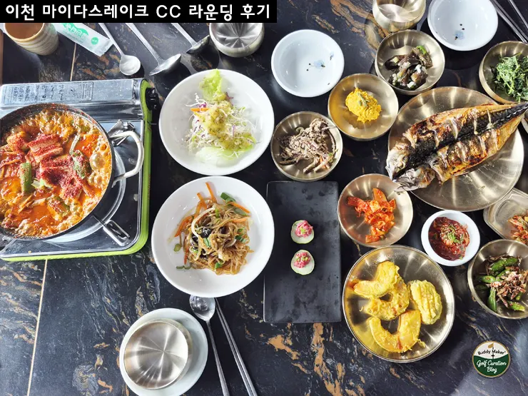 이천 지역 특성상 서울 근교이면서도 한적한 시골 풍경을 즐길 수 있어 라운딩 가는 길마저 여행 같은 기분을 주더군요. 코스 근처에는 중부고속도로와 영동고속도로가 연결되어 있어 차량 이동이 수월합니다. 골프장에서 가까운 주변 맛집도 많은데, 저희는 플레이 전 점심으로 ‘전주밥상’이라는 한식집에서 갈치조림과 고등어구이를 먹었어요. 든든히 식사까지 마쳤으니 이젠 공만 잘 치면 될 것 같은 기분이었습니다. ㅎ